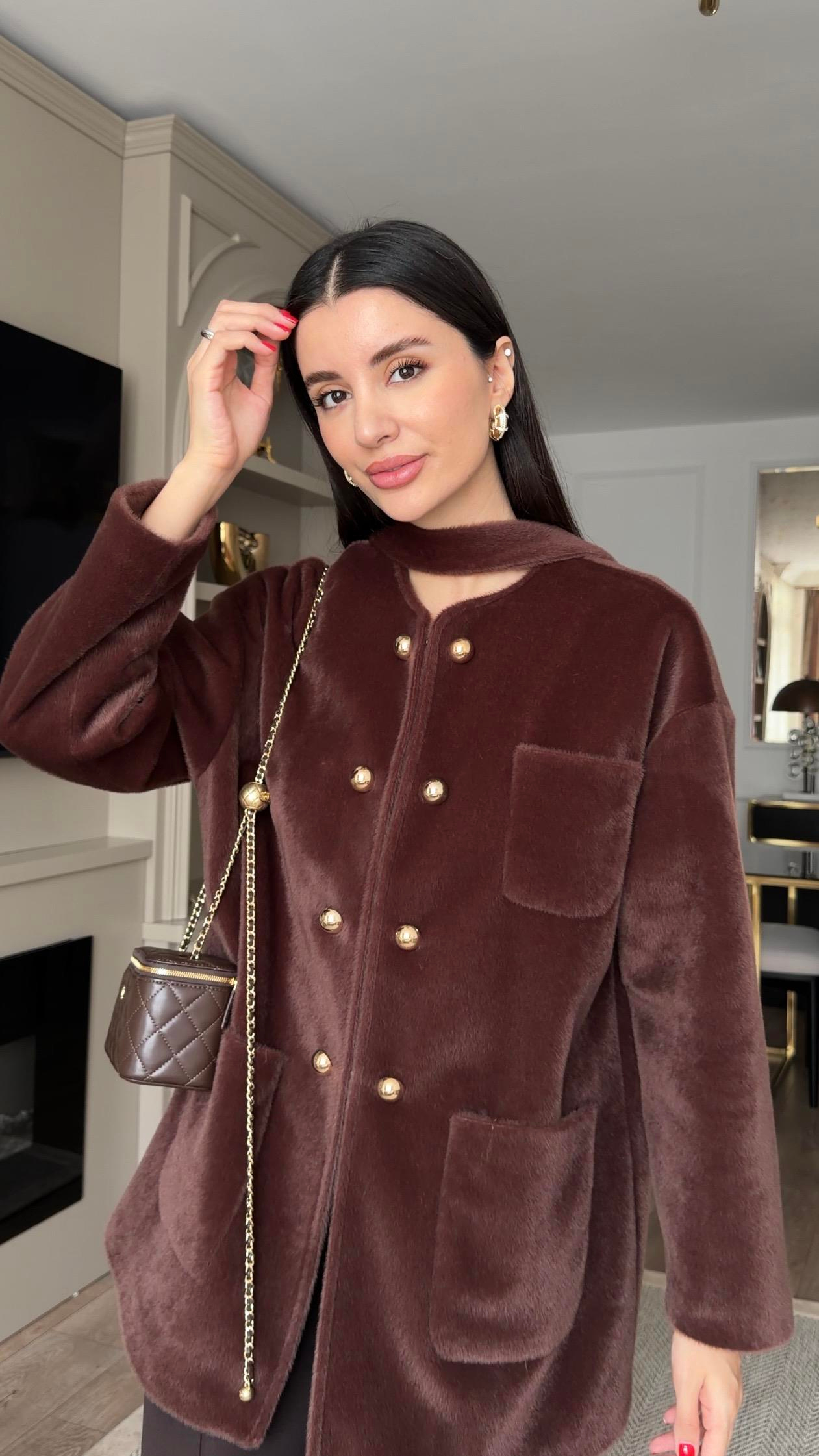 Gold Düğmeli Kahve Kısa Kürk Ceket