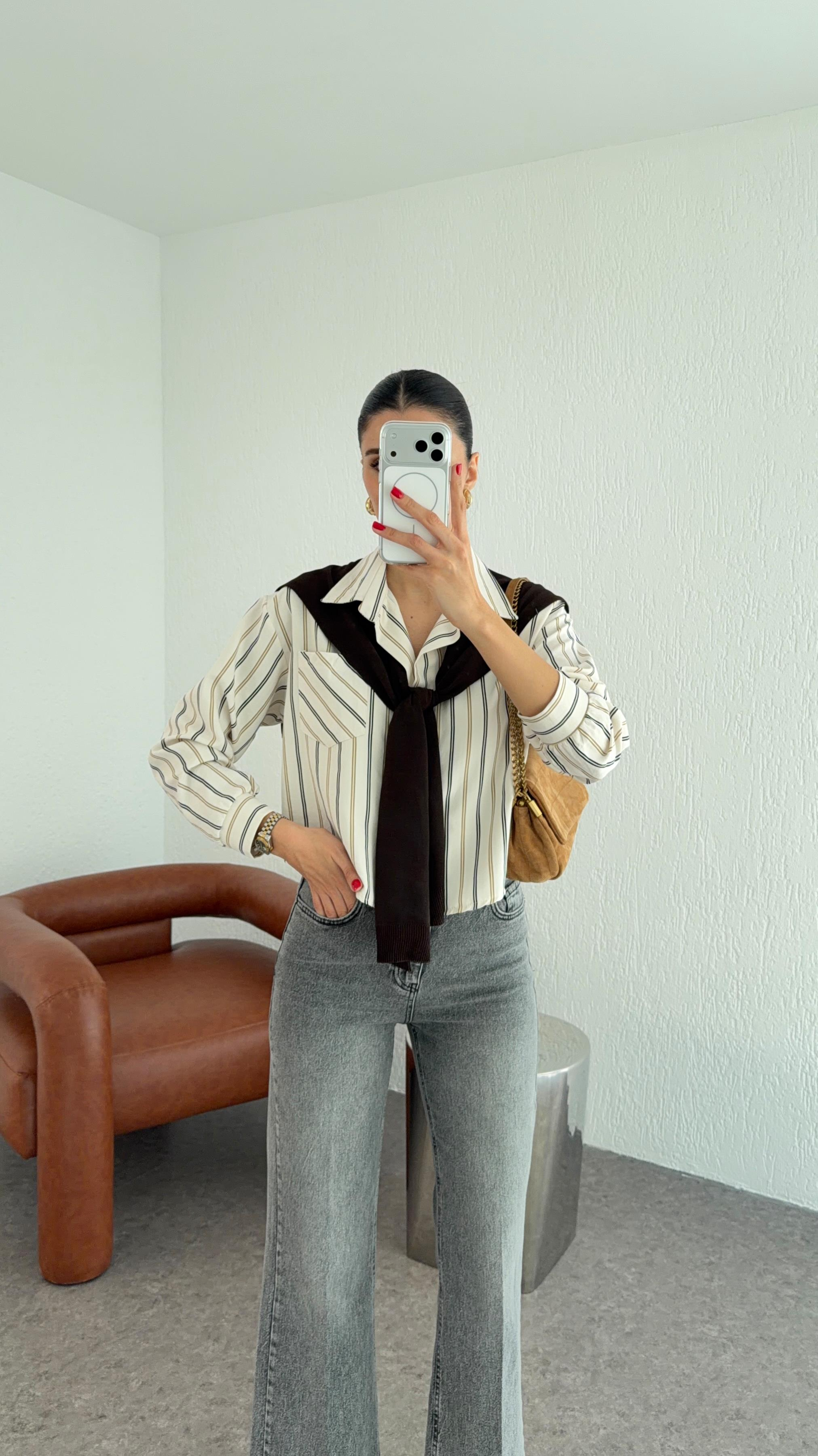 Kahverengi Triko Atkılı Gömlek