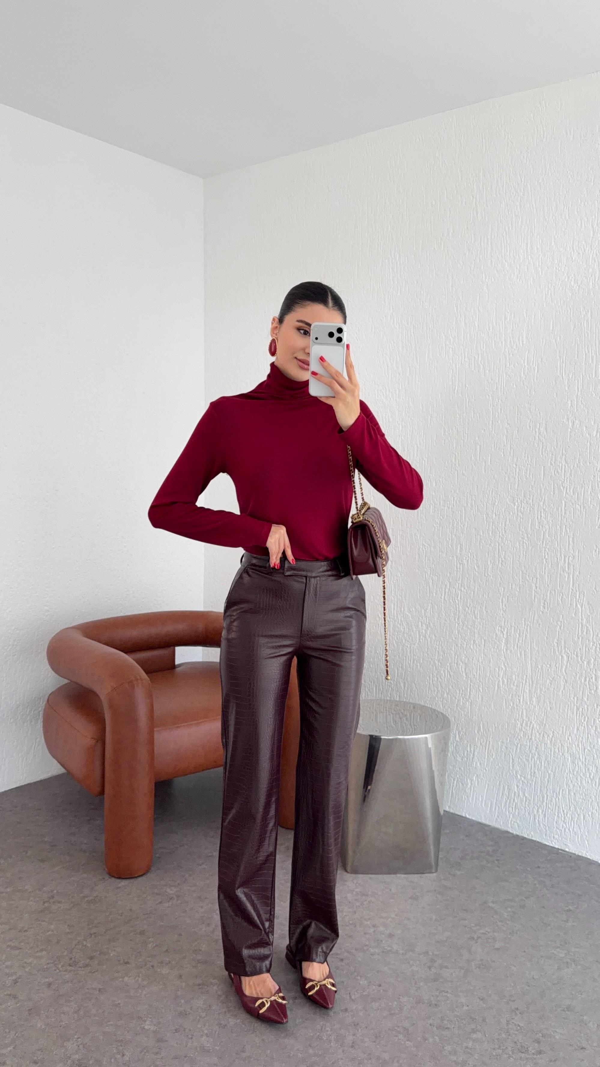 Kroc Bordo Deri Pantolon