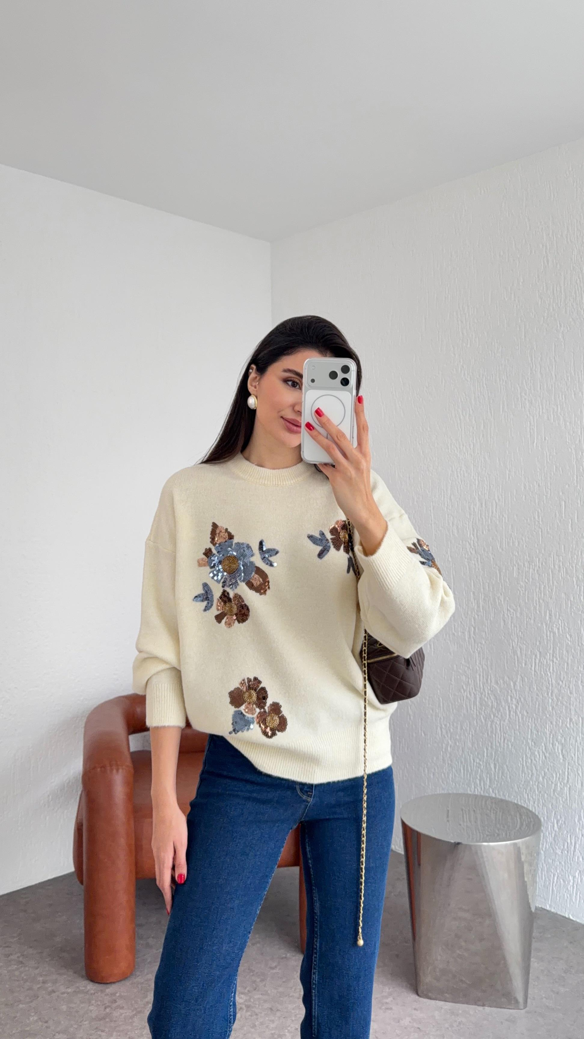 Pullu Premium Ekru Kazak
