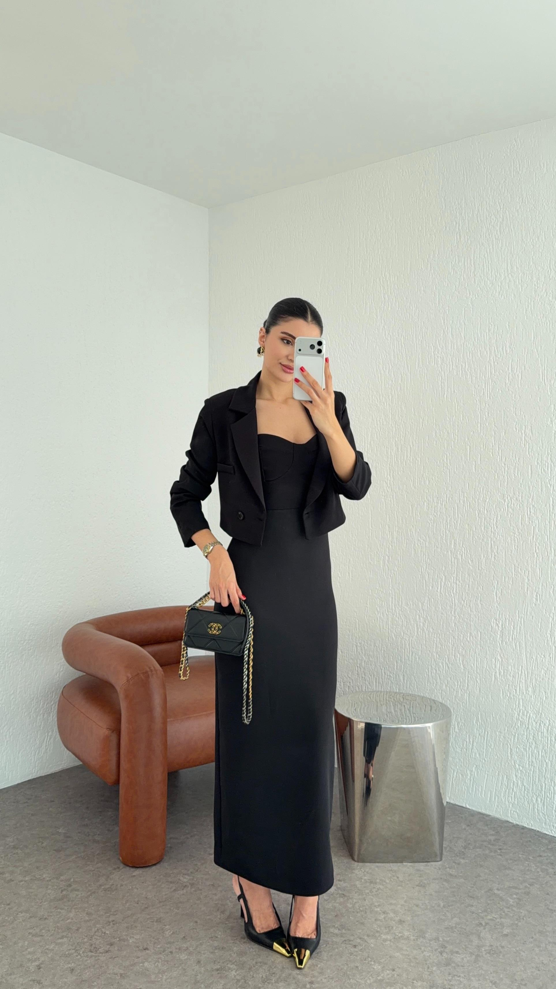 Ürün Boyu: Elbise : 118 cm - Ceket : 44 cm ( Bedenler arası 1-3 cm farklılık gösterebilir )